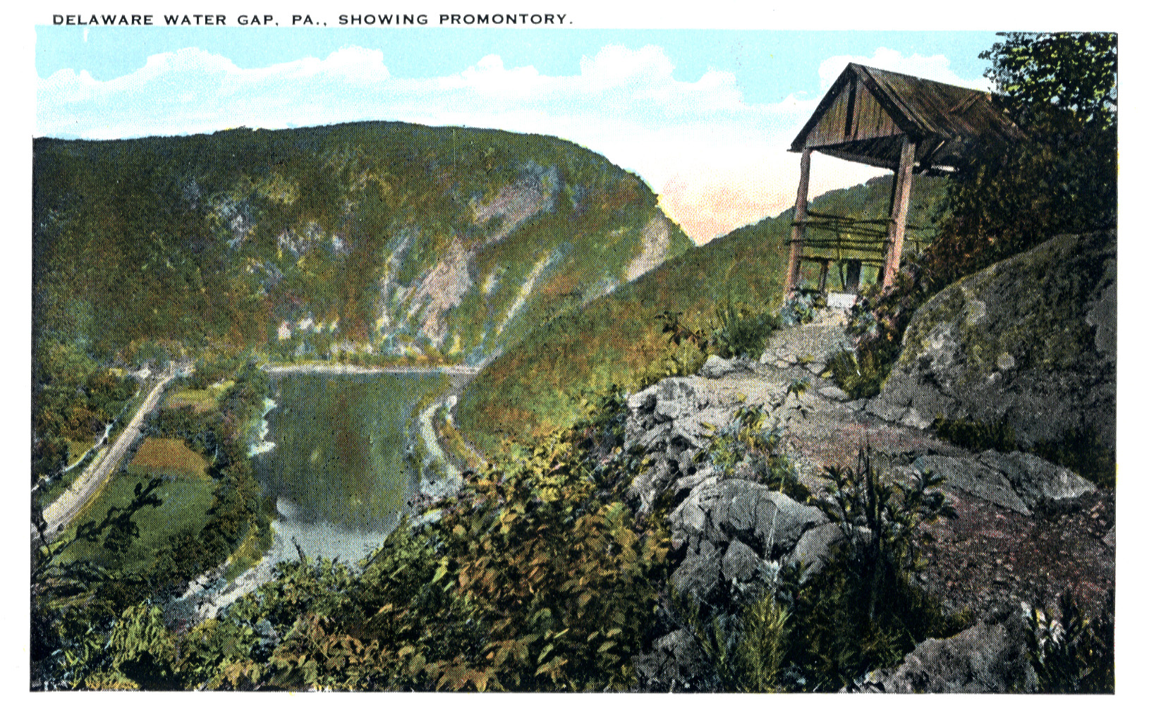 Delaware Water Gap, Pa., Showing Promontory. Many thanks to Lew Hoy for generously making this set of postcards available |